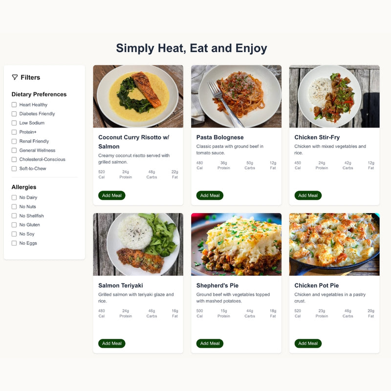 Ready to eat meals made for medical conditions to be simple, delicious, and supportive of healthier aging.